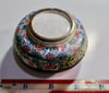 The overall diameter is about 3 inches and it stands about an inch and a half tall.. The two photos that include the ruler gives you a sense of the overall size when viewed with the lid on versus just the bowl portion shown upside down.