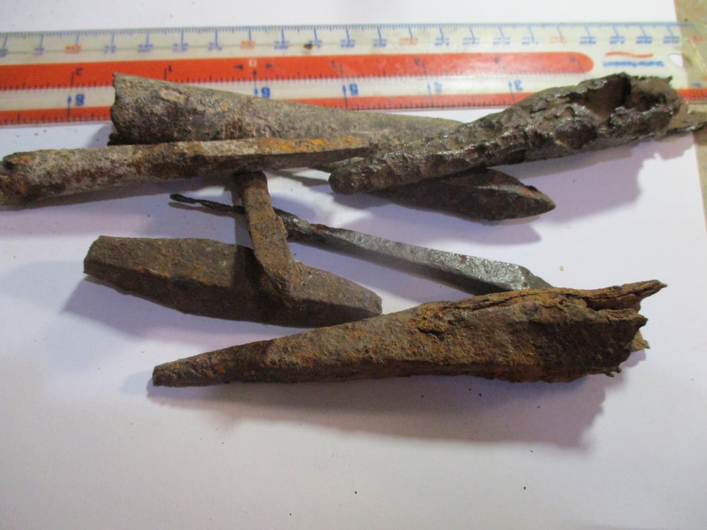 NOTE: The third photo shows this and other varied large spear points and one heavy chunk of metal I believe was once a crossbow arrow tip. I have not listed all of these 8 in the sale. Please ask for more details or photos if you would like to hear about/see more. Alsothis item is listed as having 3 total with 2 duplicate. All 3 are about 95% the same.