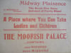 I don't believe the small tear at the top, which doesn't impact any of the text, detracts. I realize that a tall and narrow piece such as this requires some creativity to get it ready to display. I could see it displayed alone with just the right matte and frame; or one might go out on a limb and create a subtle collage with a couple other Moorish Palace items--brochure, ticket, or......?